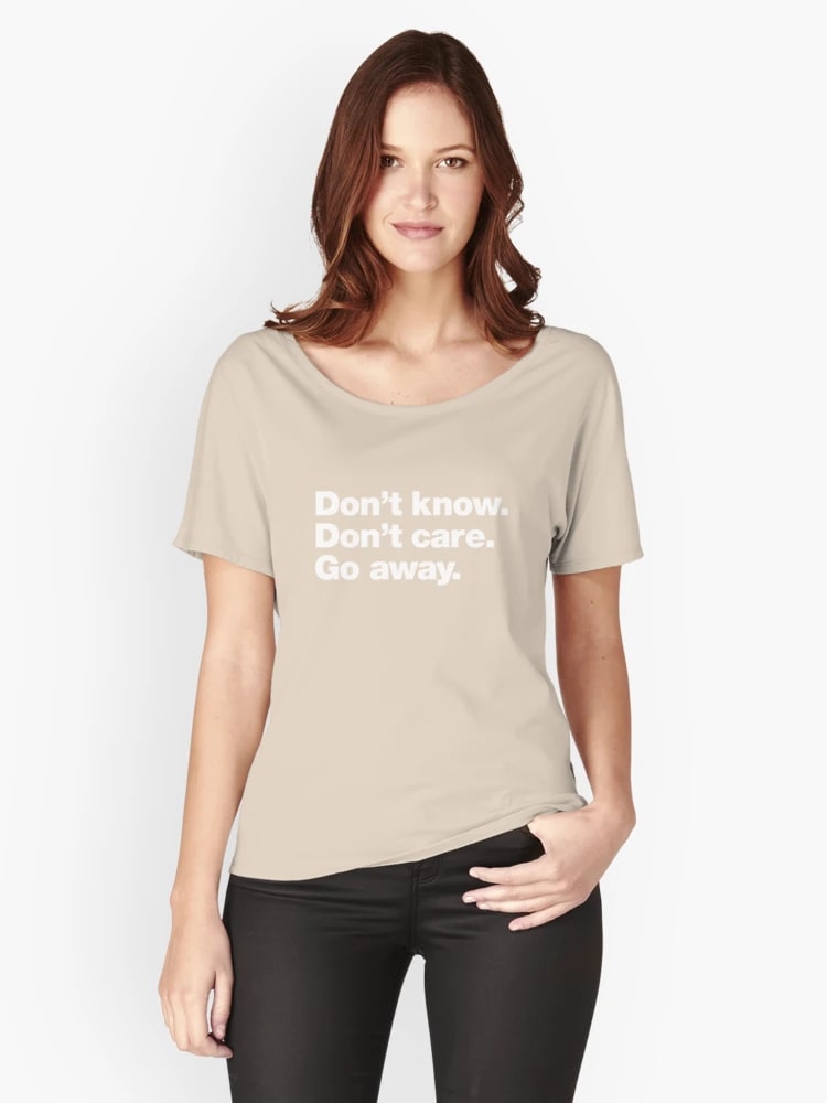 Don’t know. Don’t care. Go away. Relaxed Fit T-Shirt – fashion | all over print, streetwear