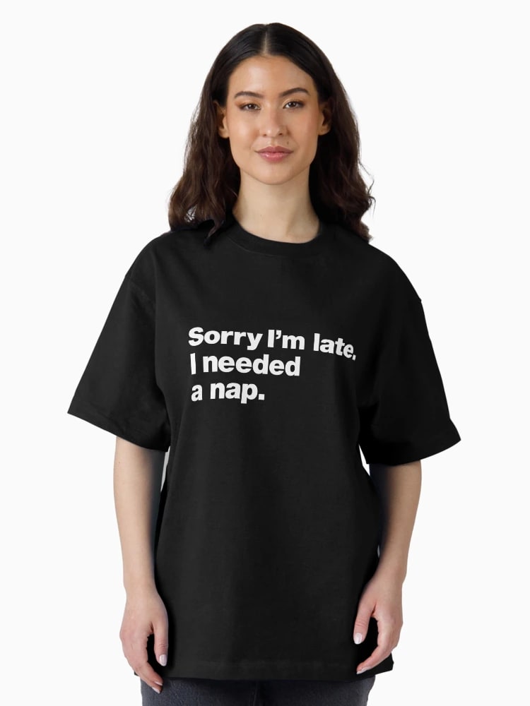 Sorry I’m late. I needed a nap. Oversized T-Shirt – fashion | all over print, streetwear